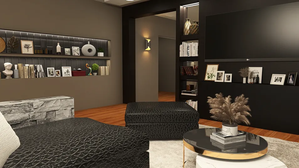Large, luxury, modern and dark-toned, this down-town apartment is every family's dream. Everything they need in a house plus the cozy, contemporary aesthetic.