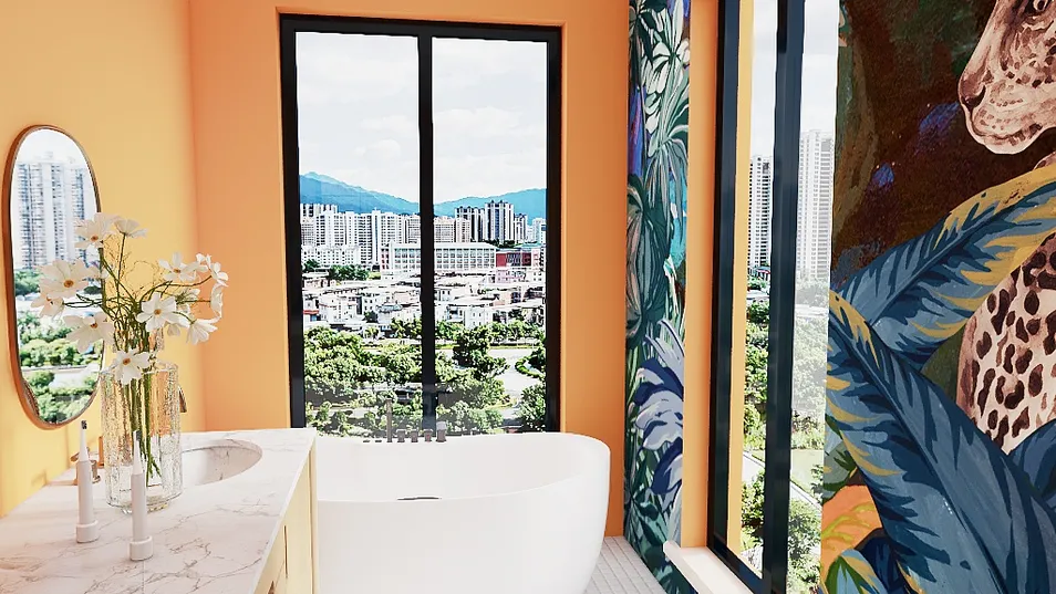 Die lebendige orange Farbe des Leoparden bringt eine unerwartete Wärme in den Raum. Jedes Detail, von der strukturierten Oberfläche bis zu den sanften Kurven, erzählt eine Geschichte von Eleganz und Energie. Es ist, als ob der Raum selbst lebt und atmet.