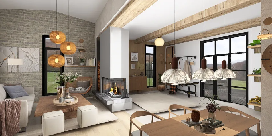 In the soft embrace of natural light, textures converge—a dance of wood, glass, and woven fibers. Each element whispers a story, from the rugged charm of exposed brick to the delicate shimmer of pendant lights, crafting a serene yet inviting atmosphere.