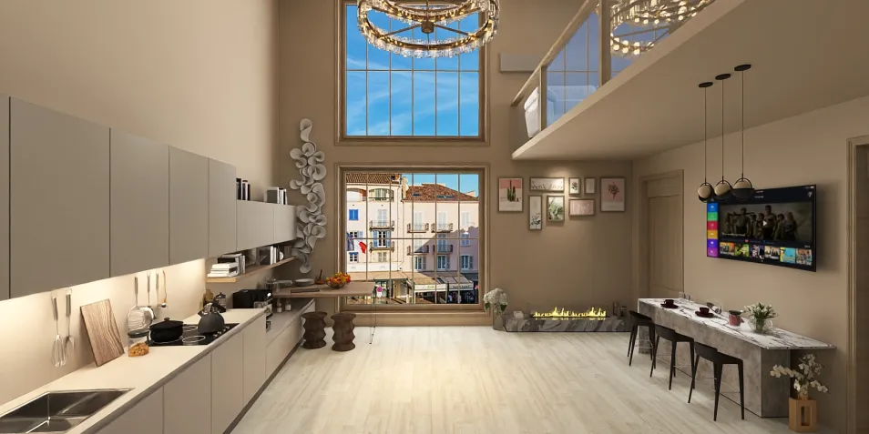 In this airy space, natural light dances through vast windows, illuminating sleek cabinetry and a minimalist aesthetic. The subtle interplay of textures invites both comfort and sophistication, creating a harmonious blend of form and function that feels effortlessly refined.
