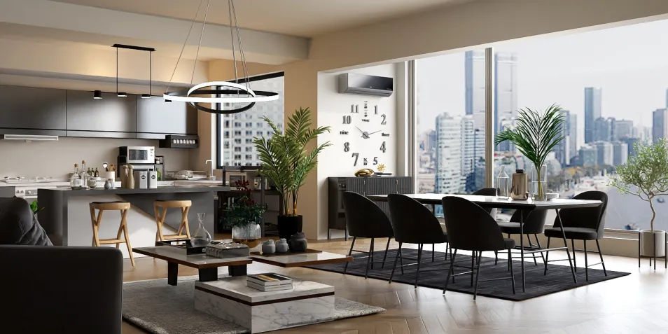 Open plan studio apartment