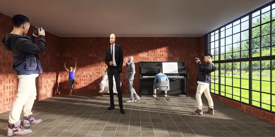 Two journalists are filming a visit with the president, not even noticing that an astronaut is sitting in the chairСнимают космонавта не вид