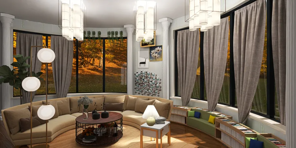 Еженедельный номер с видом на пространство App-Futurist, комнату и сад