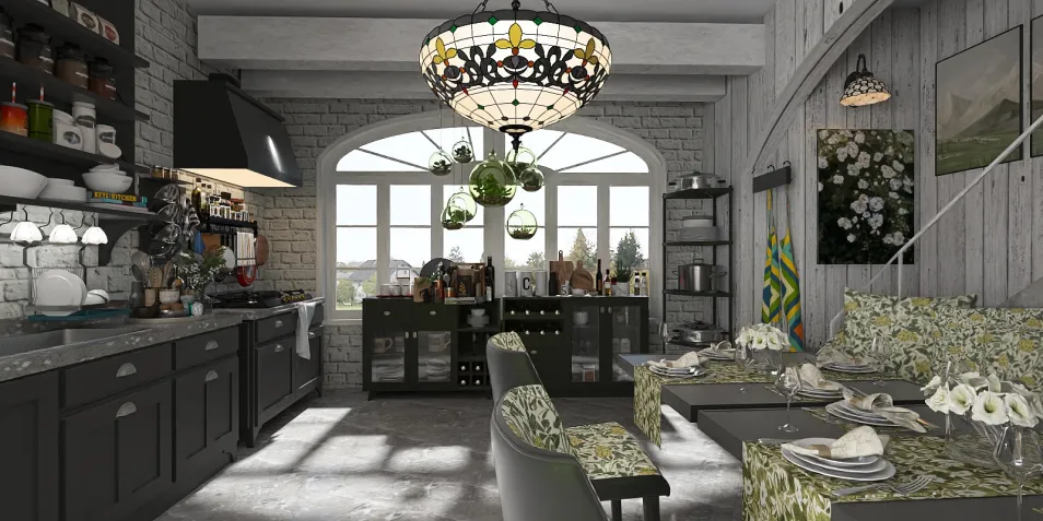 Еженедельная комната для приложения — спальня и фермерский дом с арочным окном