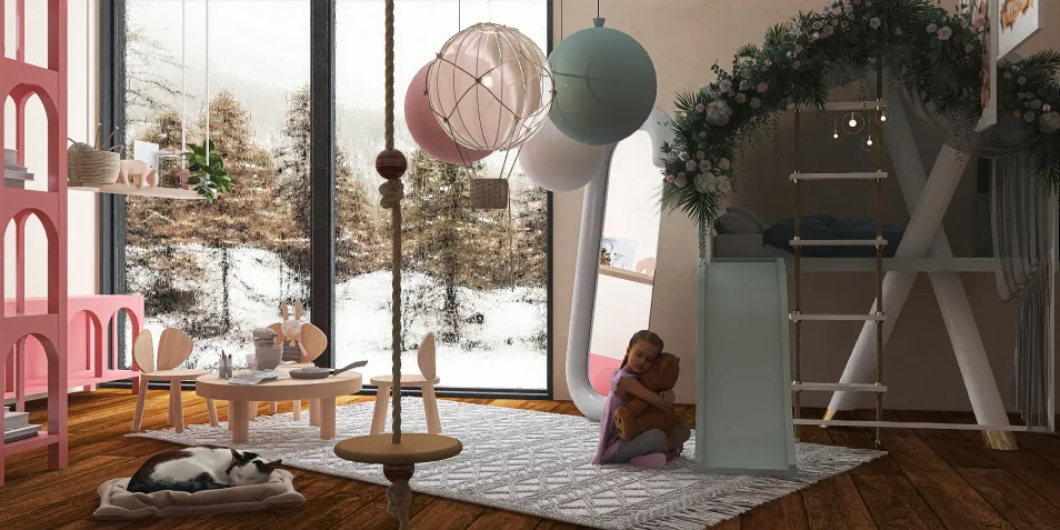 🥰 Says goodbye for teddy before going to the school. Girly room design 🧚🏼♀️