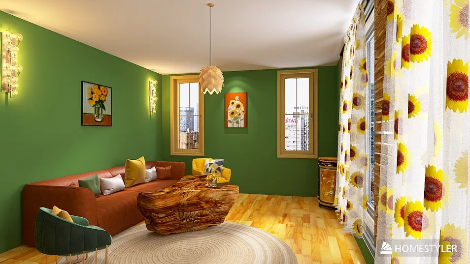 I liked the sunflower challenge but wanted to make it into a room that is more "summer" to me, highlighting colors of sunflowers but with some deeper, more calming tones to give a sense of a cool breeze. If you live where it is very hot for summer, you want the summer look without the high temperatures, so I felt like this encapsulated the outdoors without the heat.