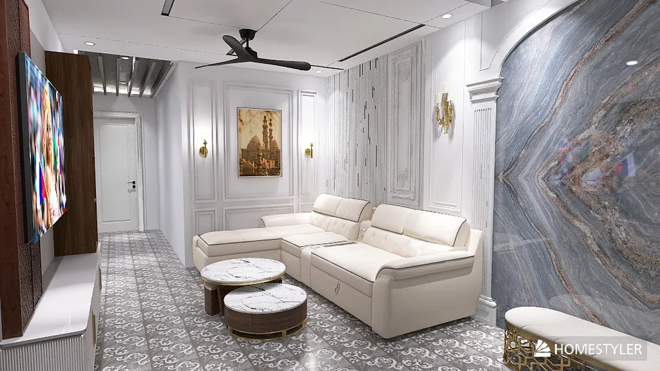In this penthouse, the air is thick with opulence. A marble wall whispers tales of grandeur, while velvet couches beckon with a promise of elegance. Each corner, a carefully curated contradiction, where luxury and solitude dance in harmonious disarray.