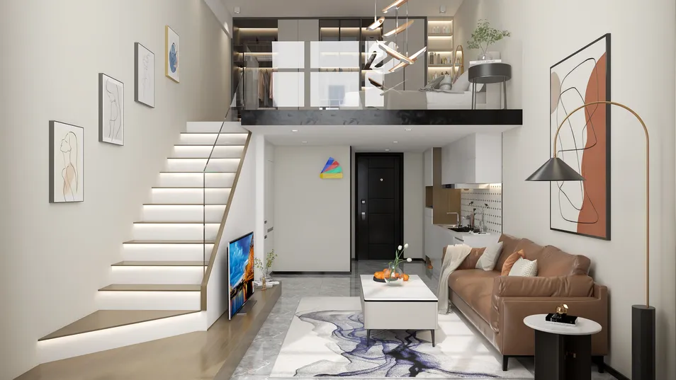设计理念:年轻家庭、创意工作者追求自由与个性。 AI功能应用:AI智能视角、AI灯光渲染、AI材质选择 比赛主题:结合AI的加持以及精准度尺度比例结构,把一个超高颜值的家给与你 落地状态:否