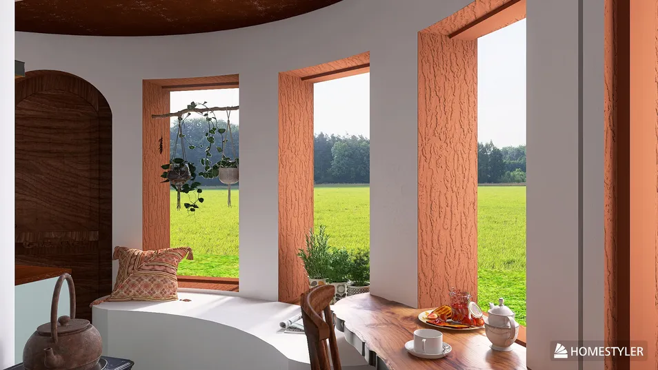Clay, Straw, Sand - Three of the most readily available and sustainable substances on earth. Structures built with cob can be any shape and require no specialized training. Nearly anyone can do it! South facing exposure allows passive solar heating in winter.