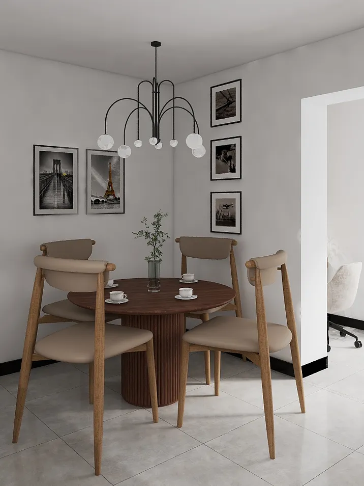 Looking for small apartment interior design ideas that combine beauty and practicality? This modern kitchen-dining space with a cozy home office on the enclosed balcony is a perfect example of smart, stylish planning. This project is all about minimalist aesthetics and maximum functionality. The kitchen features a timeless palette of warm wood, soft matte beige cabinetry, and graphite appliances — a classic Scandi-modern combo. ✅ Integrated lighting under upper cabinets adds both ambiance and task clarity, while soft neutral walls enhance the sense of space. ✅ The round wooden dining table and curved-back chairs create a tactile, inviting atmosphere, perfect for daily meals or relaxed coffee breaks. ✅ Wall-mounted black-and-white photography adds character and a subtle narrative thread. Full-height refrigerator fits flush into custom cabinetry — no visual clutter. Handleless fronts and under-counter appliances maintain clean lines and seamless surfaces. The matte black faucet and accessories provide a bold, modern contrast. Lighting Matters A statement contemporary chandelier with globe bulbs anchors the dining area, while recessed ceiling spotlights offer soft, ambient lighting throughout — an essential for open kitchen designs. Balcony Turned Smart Workspace The adjacent balcony was transformed into a serene home office nook, ideal for remote work or focused study. ✔️ Custom oak wood shelving with open styling adds warmth and functionality. ✔️ Two pendant task lights offer focused illumination for working hours. ✔️ Compact layout, soft shades, and layered textures bring comfort without sacrificing efficiency. @homeseek