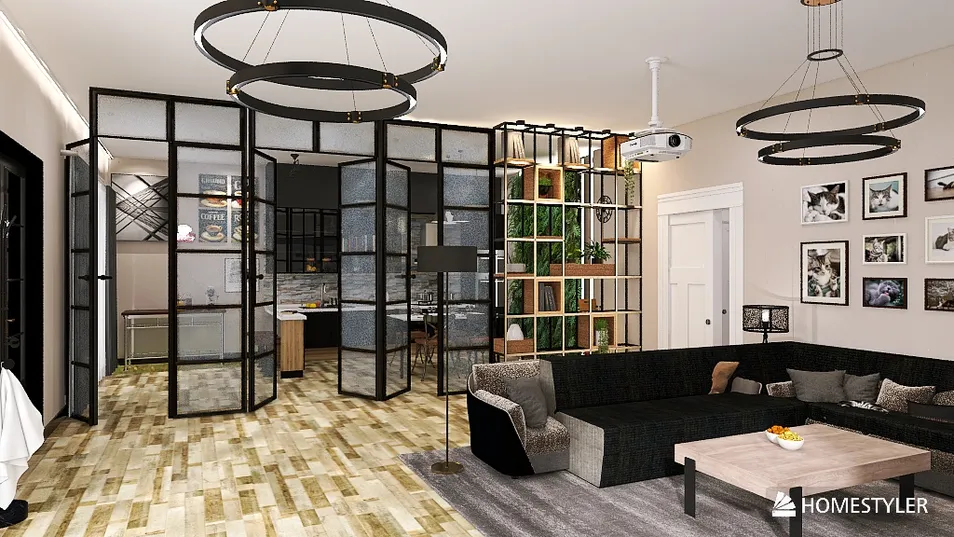 (work in progress )L'appartamento, situato al terzo piano di una palazzina multigenerazionale, è stato progettato per i membri più giovani della famiglia, con uno stile industriale reinterpretato in chiave "soft" per integrarsi armoniosamente con gli stili degli altri piani. La zona giorno è un open-space flessibile, dove cucina, sala da pranzo e soggiorno sono divisi da una parete in vetro e profili neri e da una libreria a giorno. Il design, definito "Industrial-Chic", combina elementi industriali come profili metallici scuri e lampade a sospensione con tocchi accoglienti, come la pavimentazione in legno chiaro e una parete verde verticale che funge da punto focale. L'arredamento è funzionale, con un'isola-penisola in cucina e un proiettore a scomparsa in soggiorno. Le camere da letto mostrano una grande versatilità. La prima e la seconda camera mantengono un forte tema industriale-rustico, con pareti in mattoni a vista, legno e arredi in metallo, ma in modi distinti. La terza camera, per una ragazza, si allontana dal tema, abbracciando un'estetica moderna e minimalista con una palette di colori chiari e tocchi di blu, pur mantenendo dettagli industriali "soft" come mensole a tubo, un'illuminazione mirata e un pavimento in cemento stampato. La quarta camera, invece, è un'espressione "hardcore" dello stile industriale, con tubi idraulici a vista e una poltrona in pelle a contrasto. Il bagno è un esempio di funzionalità intelligente, con due vani separati per WC/bidet e una doccia opaca per la massima privacy. Lo stile è moderno, con piastrelle in cemento, finiture in metallo e rubinetti dorati, mentre il pavimento in legno blu aggiunge un tocco di colore. Nel complesso, il progetto bilancia con successo l'estetica industriale con la necessità di personalizzare ogni spazio, creando un'abitazione coesa ma versatile, adatta a diverse personalità.