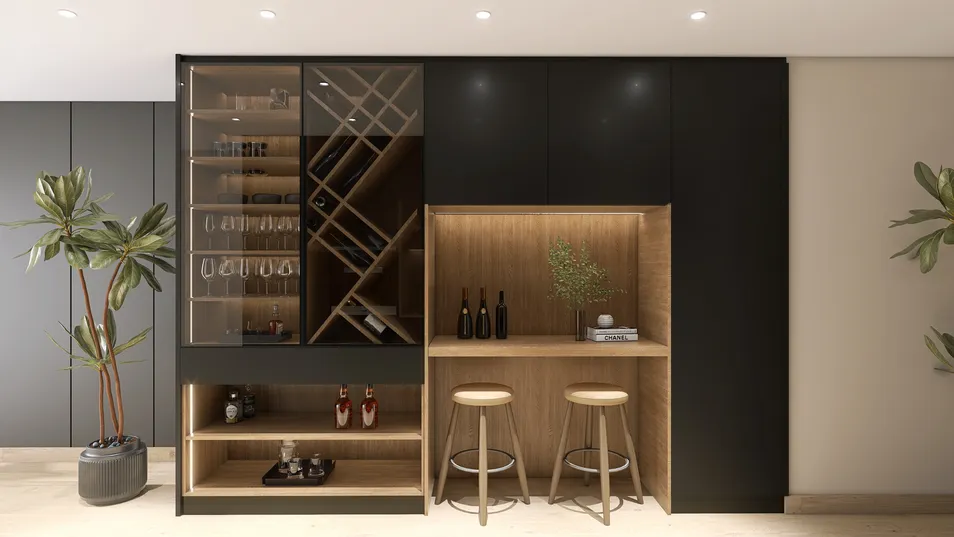 En esta cocina, el negro mate se fusiona con la calidez de la madera. La iluminación suave realza cada detalle, mientras las formas limpias crean un refugio elegante. El contraste invita a la contemplación, como un susurro en un espacio donde la funcionalidad baila con la estética.