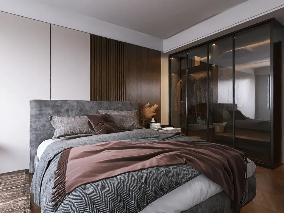 以浅灰、米白为基底,局部用金属线条、岩板提升质感。客餐厅打通显开阔,定制悬浮柜增收纳;主卧设独立衣帽间,次卧用多功能家具;厨卫选哑光瓷砖与智能家电,整体简约不寡淡,细节处见轻奢精致。