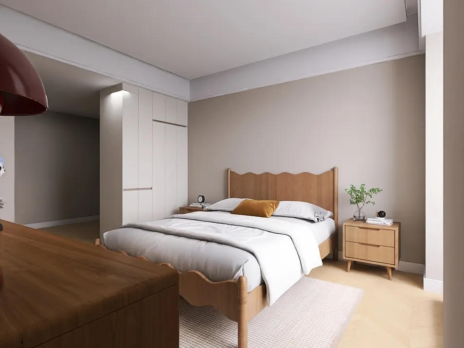 简约北欧风实木双人床,天然木质材质,稳固耐用,配有舒适床垫和柔软床品,搭配简洁床头柜,营造温馨舒适的卧室环境,适合现代家居使用。