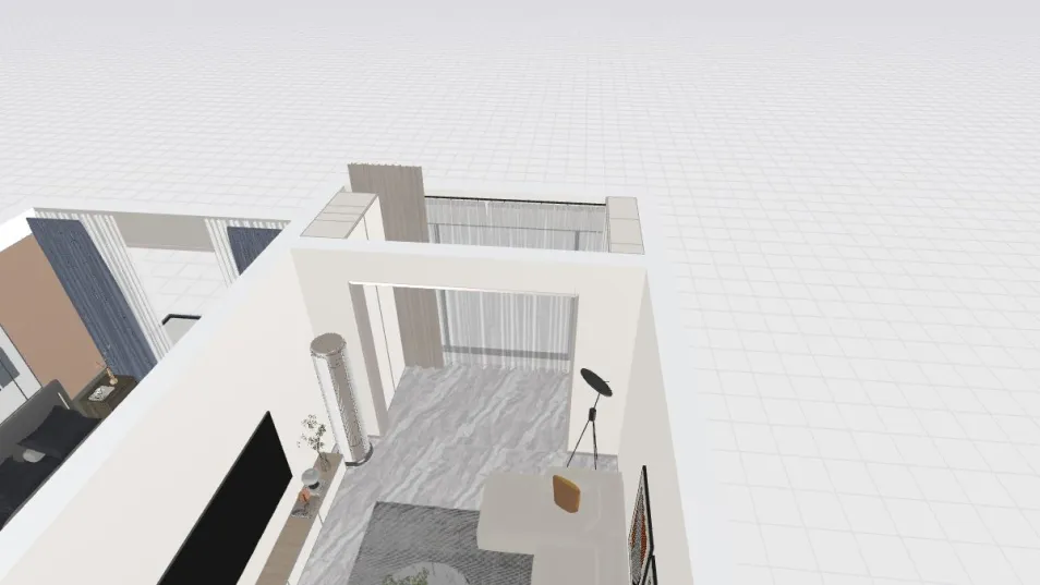 La luce filtra attraverso le tende, disegnando ombre delicate sul pavimento. Un angolo di serenità si crea attorno al divano, dove il minimalismo incontra l'eleganza. Ogni elemento, dal vaso al lampadario, racconta una storia silenziosa di bellezza e funzionalità.