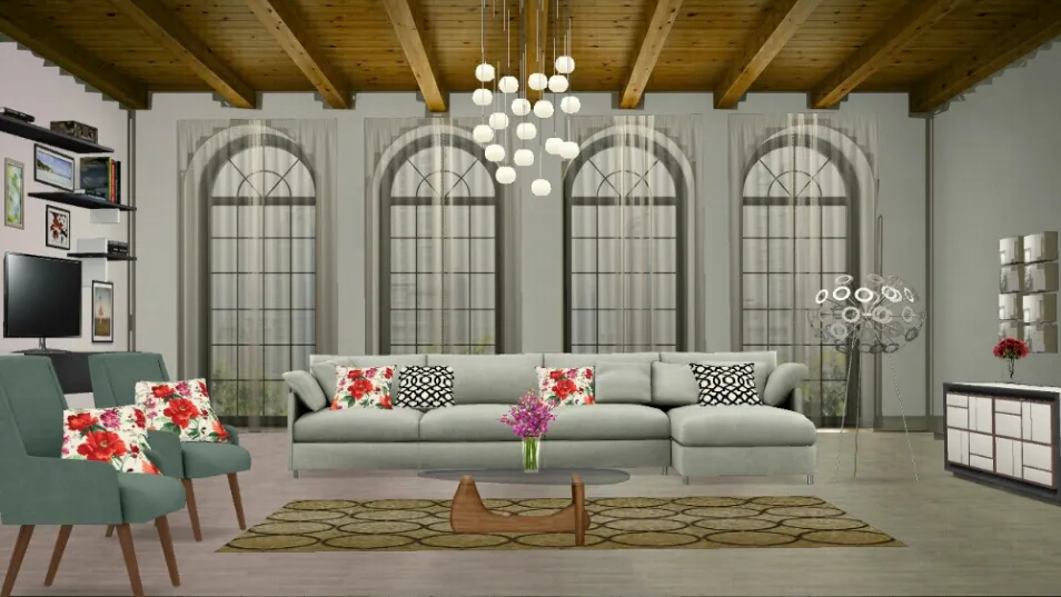 Criei uma sala com tons claros e adicionei algumas cores para não ficar tão sem graça.