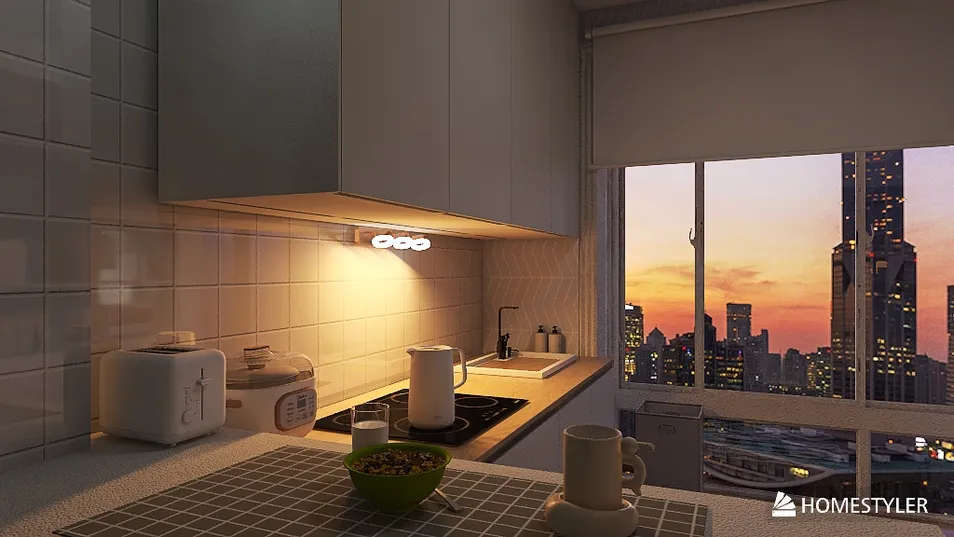 Detalhes: Dormitório- Compacto, Cozzy Kitchen Ambiente único, quarto/sala de tv Banheiro clean Imagens em diferentes contextos de tempo e iluminação.
