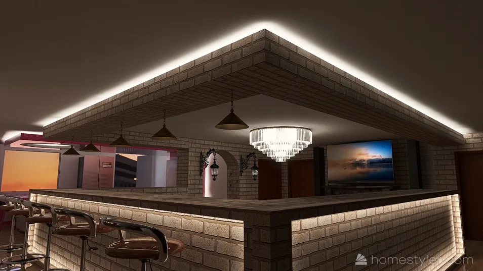 This design is not from imagination, it is a real design for my apartment, I tried to be modern in different colors and every corner has a different space from the other in decoration, colors and design,, The apartment is a reception hall in the main entrance I chose for it the blue and black color, As for the living room, I was inspired by the design of a wooden house in the middle of the forest with bricks and wood, and I chose gray and orange for it. The kitchen was at my wife’s request in pink and white,,,,
