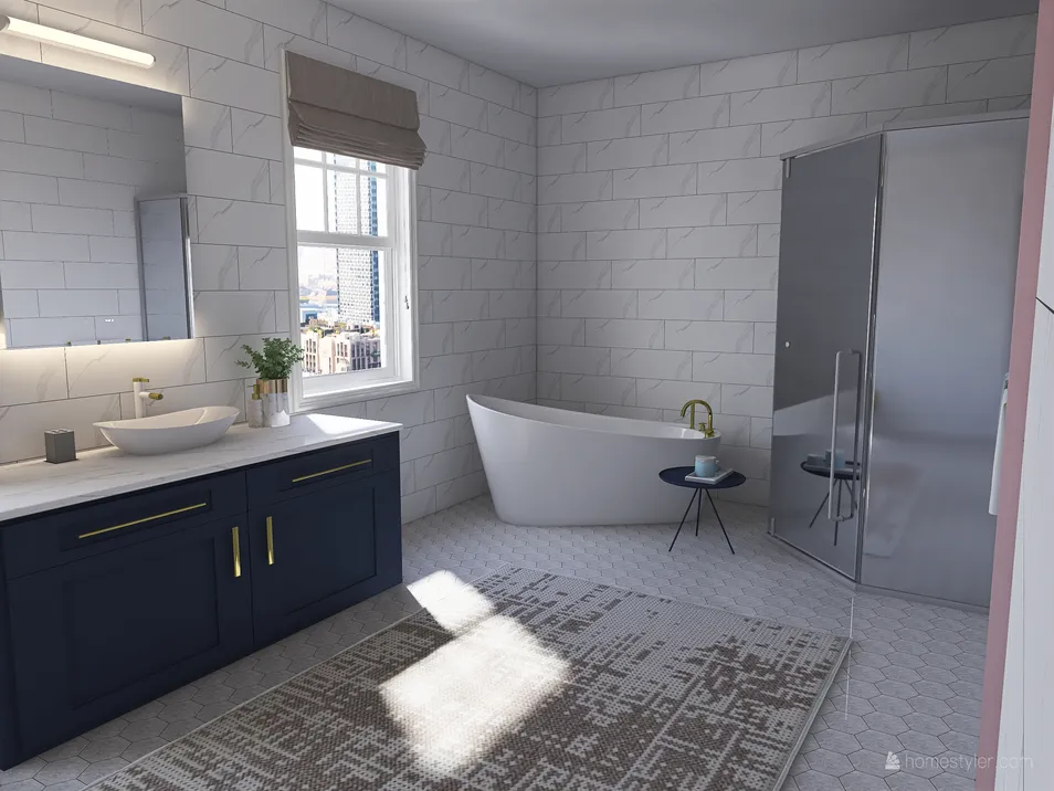 My bathroom is inspired by a coastal theme. I wanted a simple bathroom with not much going on. The colors I worked with are white, gold, and blue. Overall I wanted to keep the bathroom looking clean and simple.