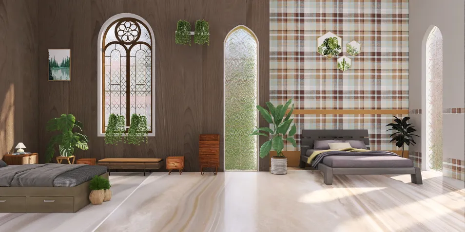 An economy friendly bedroom for a kid with extra bed for guest and lots of plants!