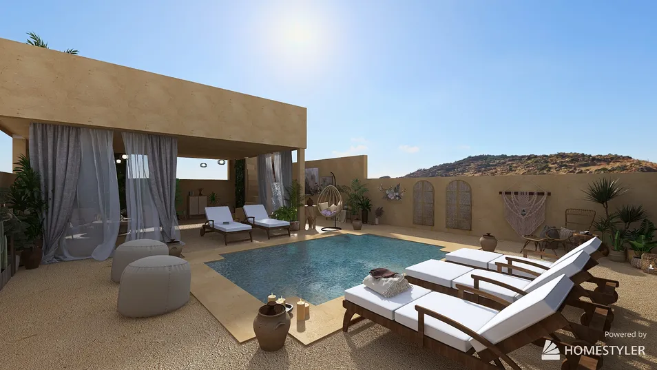 Vacation house in Egyptian style. Designed exclusively by my vision of the resort. A combination of the local brick walls with an admixture of wooden notes, linen sheets and porcelain.