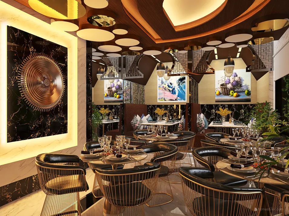International Cuisine Fine dining Restaurant in Luxury Glam Style.
