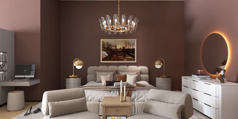 In this intimate space, the muted earth tones embrace you. Soft textures mingle with gleaming accents, while the chandelier casts a warm glow. Here, every detail whispers luxury, yet the simplicity evokes a bittersweet solitude, reminding us that beauty often thrives in the quietest corners.