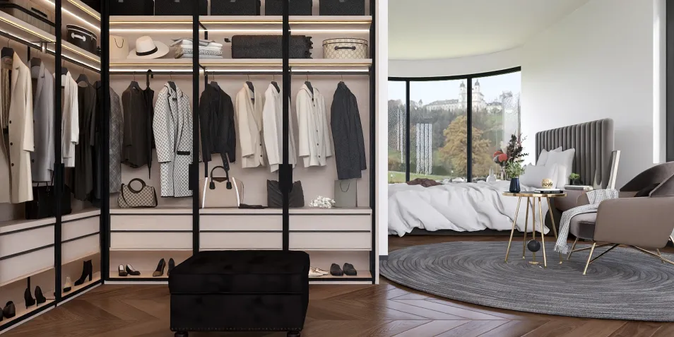 The closet, a symphony of monochrome elegance, houses garments like unspoken secrets. Each piece, bathed in soft light, whispers tales of sophistication. The open space invites the eye to wander, blurring the lines between fashion and artistry, creating a sanctuary for the discerning.