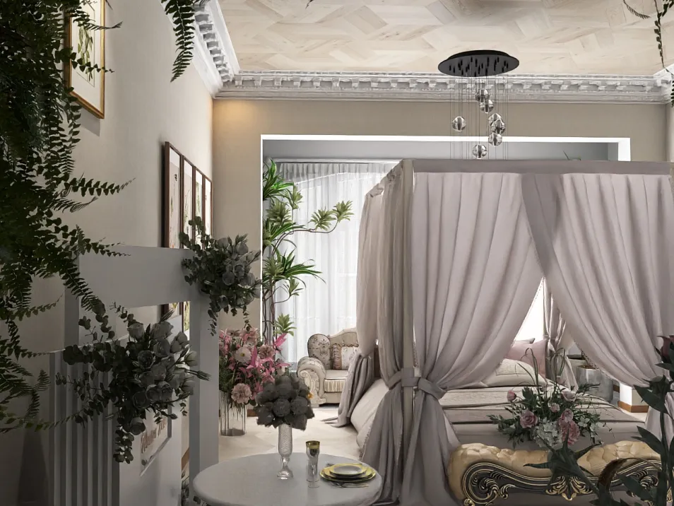 This Honeymoon Hotel Suite is the perfect room for the young couple to spend an unforgettable night. Featuring a big King Size Bed, a Mini Bar, a table to display the wedding gifts and opulent flower arrangements, there's all a newly wed couple can wish for! The colour scheme is creamy pastels like champagne, rosé pink and warm white, with the contrasting green of lots of plants to make the mix more lively and organic. Carefully selected decorative elements keep the balance of the room between playful and romantic, but also classy and elegant.