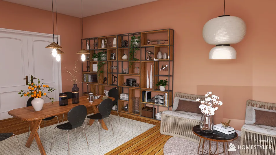 A design I did for two friends of mine. They wanted a dinningroom with a place to rest. They wished for earthy and warm notes.
