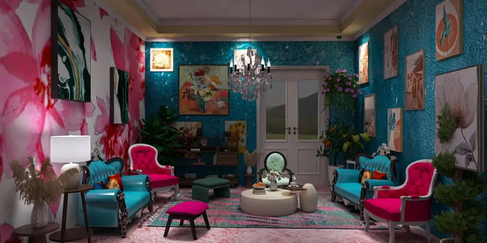 En este rincón vibrante, las paredes susurran historias de flores en acuarela. Los muebles, un eco de elegancia, contrastan con la exuberancia del arte. Aquí, cada detalle danza en armonía, como si el tiempo se detuviera para disfrutar de su belleza efímera.