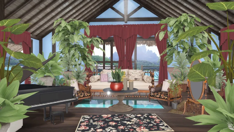 First things first- this is not part of a house. This is a room that just came to life out of my head. You can talk that plants inspired this room, and though it may seem that it is very crowded, it is an illusion as the plants are actually right up against the walls. Hope you like it!