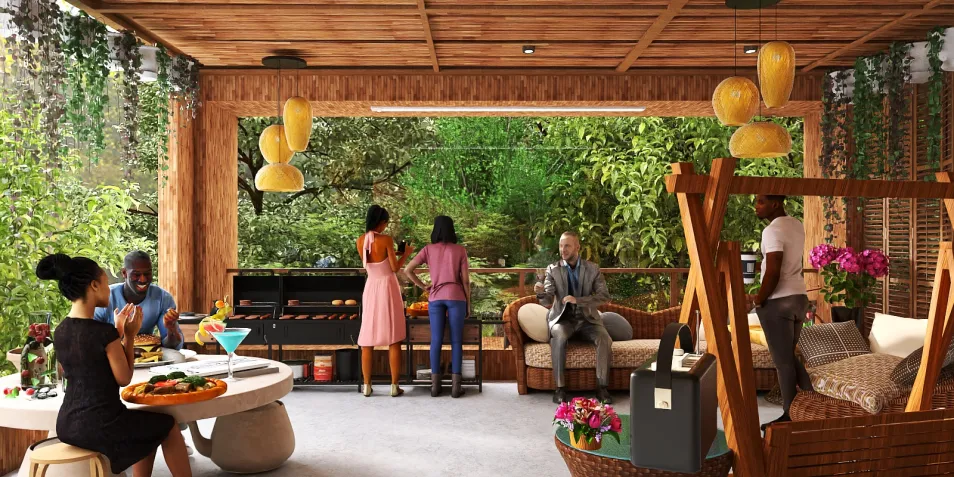 Espacio semanal para habitación, patio y oasis en el patio trasero