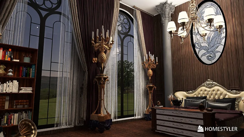 A purple and black giant gothic bedroom!