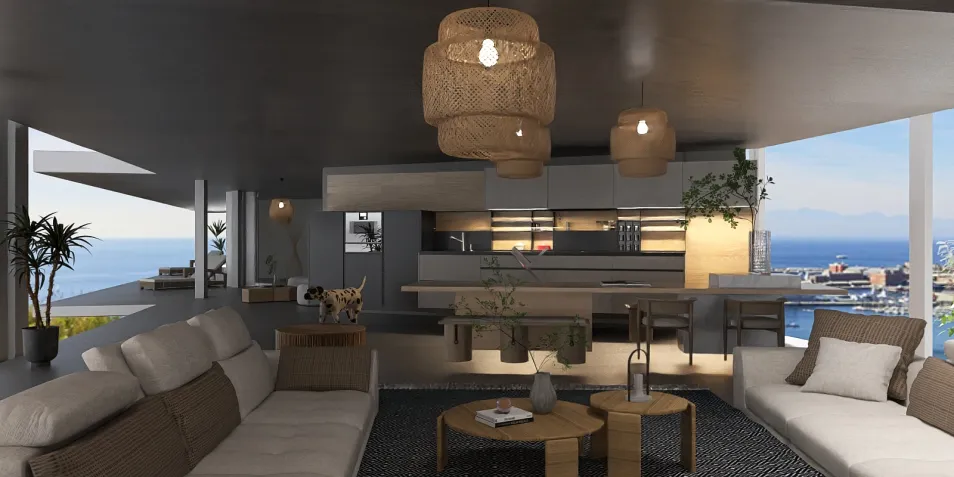 In this airy space, natural light dances off the sleek surfaces, while woven pendants cast gentle shadows. The open layout invites whispers of the ocean breeze, creating a seamless blend of comfort and elegance. It's a sanctuary where simplicity reigns, yet every detail tells a story.@SanctuaryfortheSoulDesigns