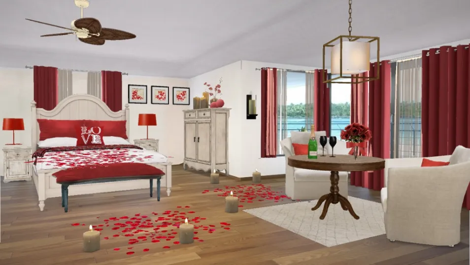 Here I blocked the two windows to give it a more private room and went with the red and white look for love.