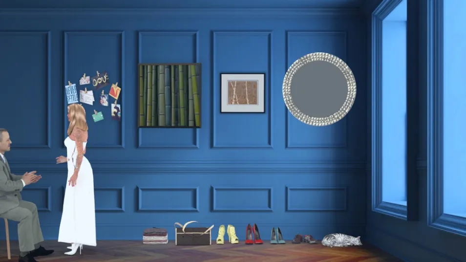 This is were she is asking her father if he likes her dress