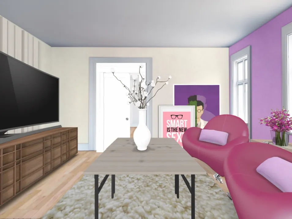 White and pink accents with fromage texture through the walls