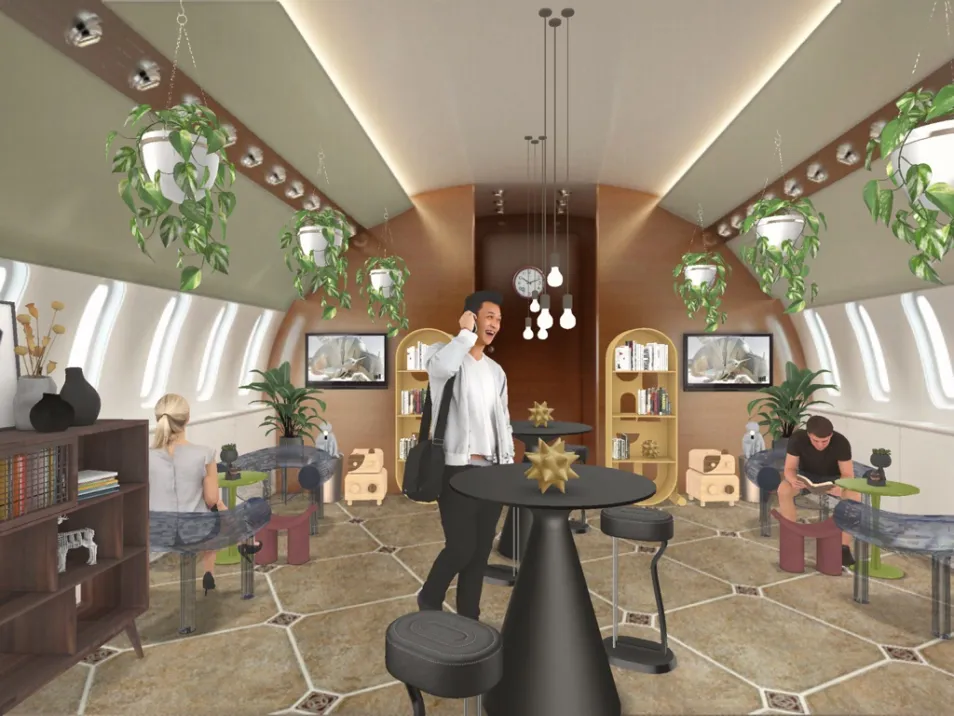 Lounge in symmetrical juxtapose at the University Cafe. Different styles of furniture were placed in contrast with the other. It’s breaking the rule and blending it all together. 😉