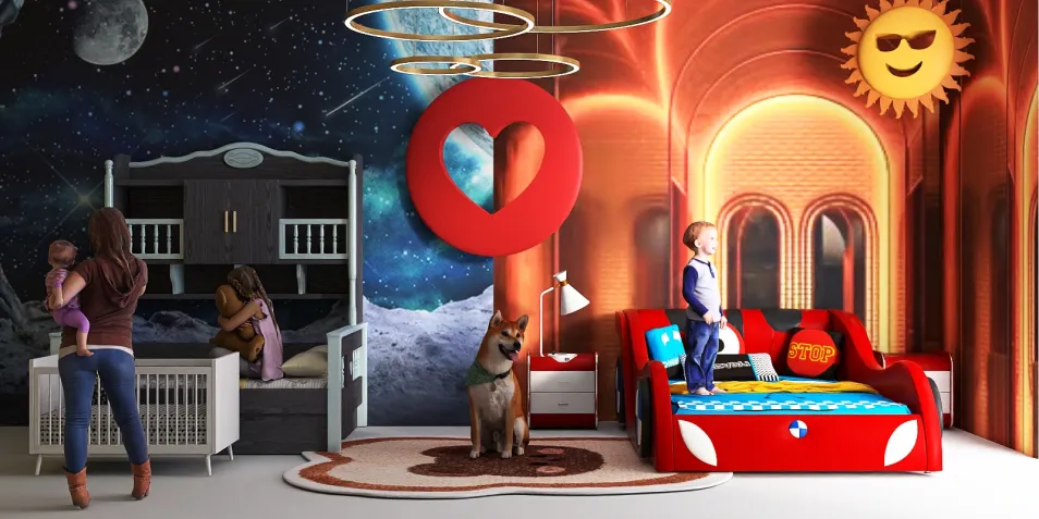 A cute bedroom for one boy, one girl and one baby . ❤️🥰☺️