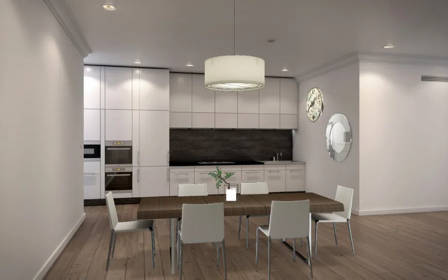 Elegant and Modern living. This kitchen is made to fit a very hungry family. Mid century modern dining table and decorations made for this beautiful family kitchen.