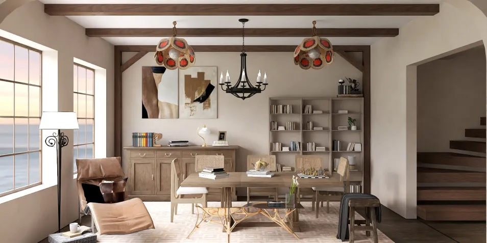 En un espacio donde las paredes susurran historias de luz y sombra, los muebles se reconfiguran como recuerdos. Las lámparas, como ojos de cristal, observan un paisaje que se despliega como un poema no escrito, donde cada objeto es un fragmento de la ciudad invisible que habitamos. España❤️