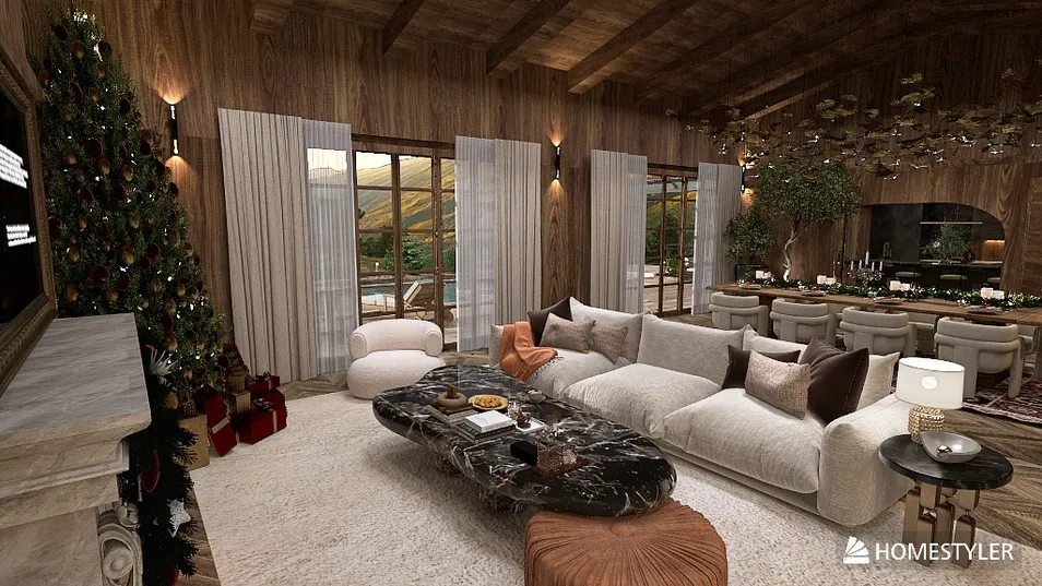 Dans ce chalet chaleureux, la lumière tamisée danse sur les murs en bois, offrant une vue imprenable sur les montagnes. Chaque détail, du canapé moelleux à la cheminée crépitante, crée un véritable cocon qui réchauffe l'âme en hiver.