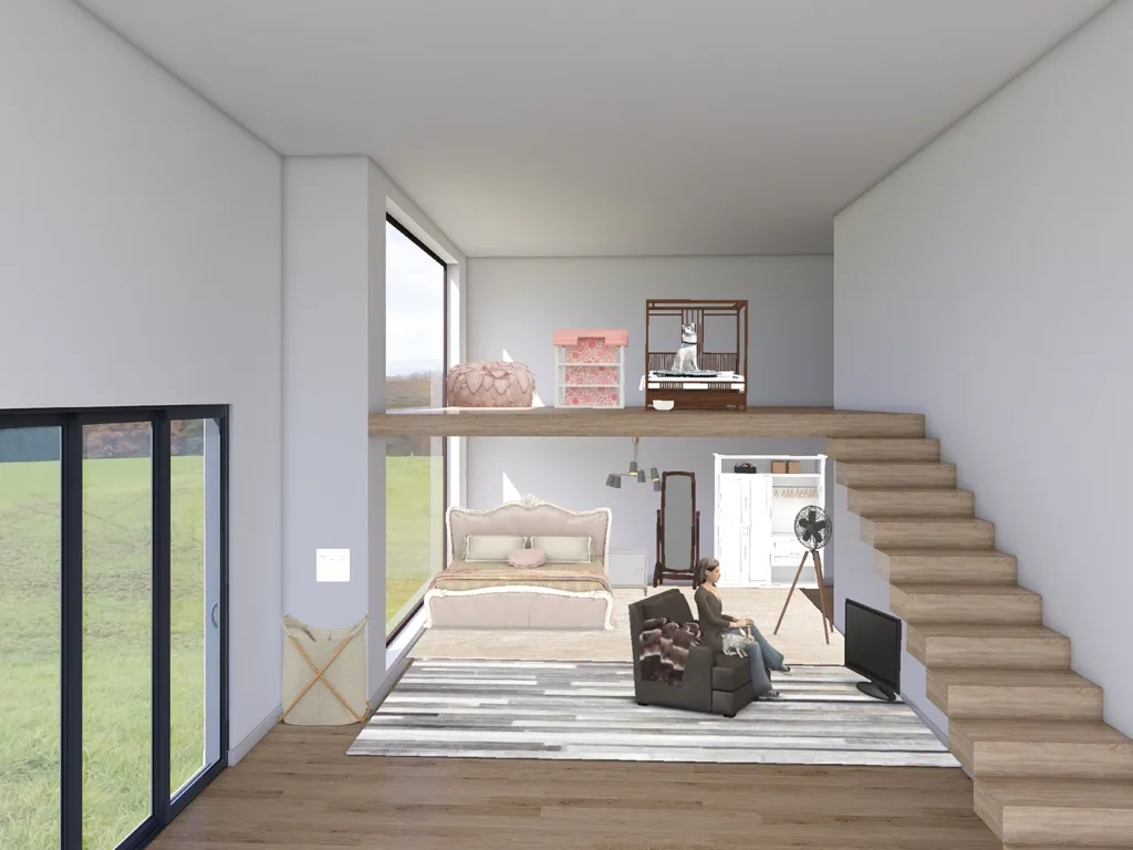 The bottom floor is her bedroom and the top is her dog bed and some play stuff.