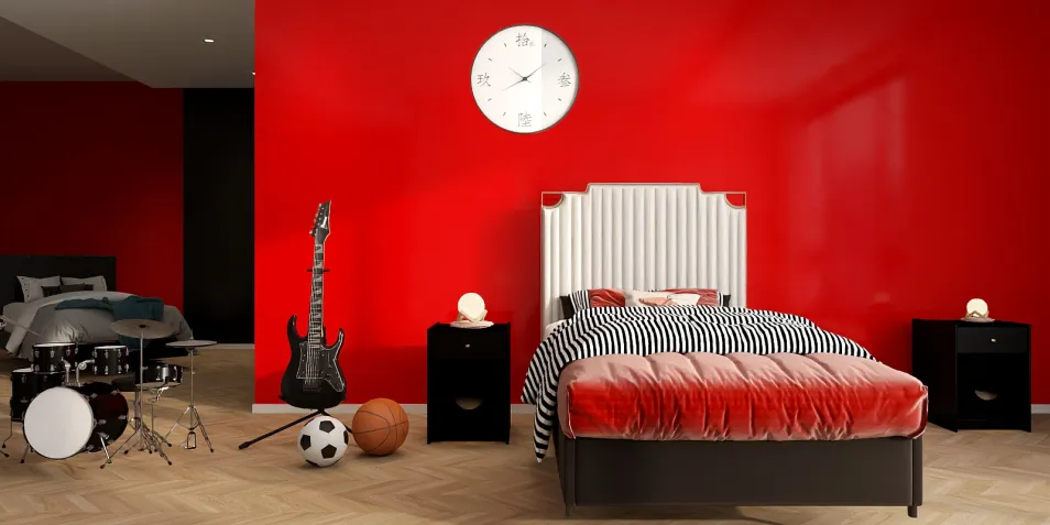 I created this bedroom for two teenage brothers who enjoy making music together.