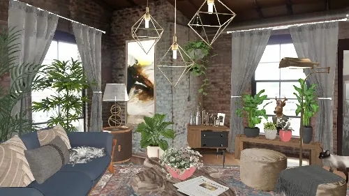 a touch of industrial and bohemian for this beautiful living room ☺️