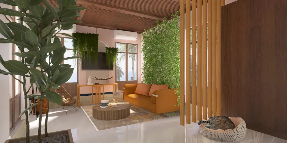 I thought about bringing lightness to an environment with medium, light colors, with favoritism for harmonious plants