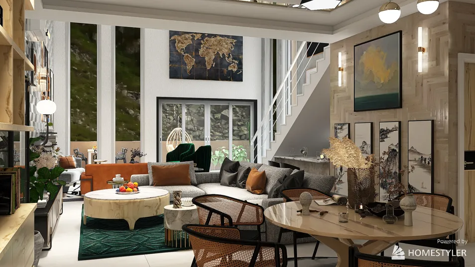 Contemporary-Rustic styling with a closeness to nature. Palettes of wood and earth tones, greens and pops of natural colours bring this space together to make a calm and cosy space for a young couple or a professional's safe haven.