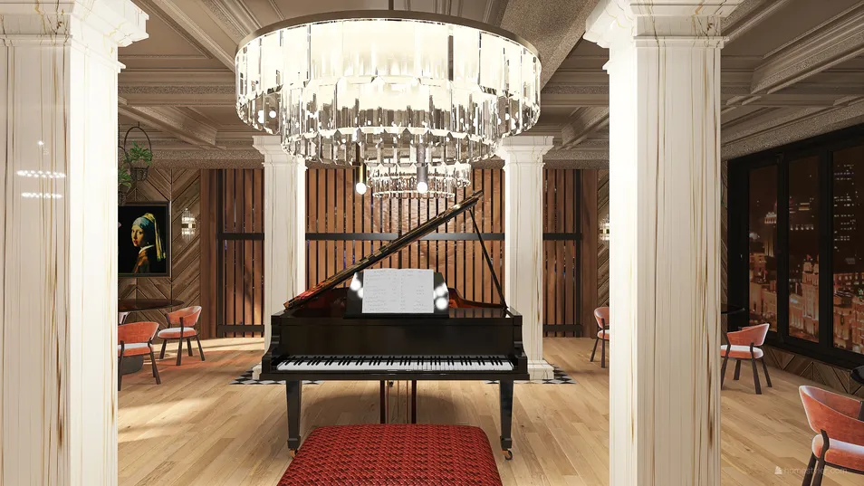 Dramatic modern hotel restaurant in progress.... It's a place to feel pampered, a visually stimulating space for the discerning eye.