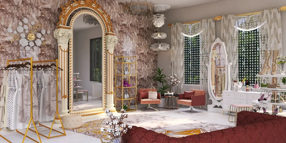 Found the very opulent mirror. Somehow ended up with a rather luxurious marble, pink and gold dressing room/closet.